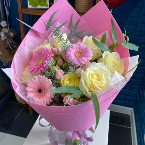 Любимой маме - шляпная коробка с розовыми и кремовыми кустовыми розамиот 7 793 руб. 8 034 руб.Купить