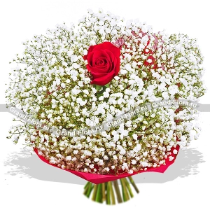 Сны о тебе – букет из розовой и белой розы с эустомой
