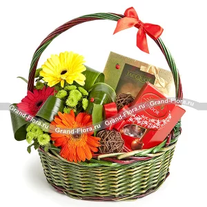 Пассаж - корзина с конфетами и герберами