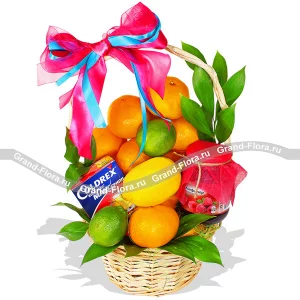 Цитрусовый эликсир - корзина подарочная с фруктами и конфетами